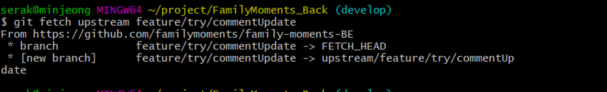 // 새로운 브랜치들을 upstream featrue/commentUpload 이런 식으로 가져옴